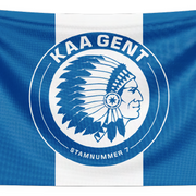 Toon je liefde voor KAA Gent met deze vlag van 150 x 100 cm, voorzien van het klassieke ronde clublogo. Dankzij de diepe blauw-witte clubkleuren en het herkenbare design is deze vlag perfect om te laten wapperen in het stadion, thuis of op verplaatsing. Gemaakt van duurzaam, weerbestendig materiaal voor langdurig gebruik.