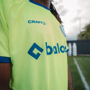 Geel - blauw design – Klassieke clubkleuren met blauwe accenten aan de mouwen en kraag.